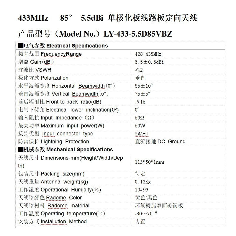 产品名称:433MHzGPCB射频天(tian)线(xian)16dBi单极化板线(xian)路板定向(xiang)天(tian)线(xian)