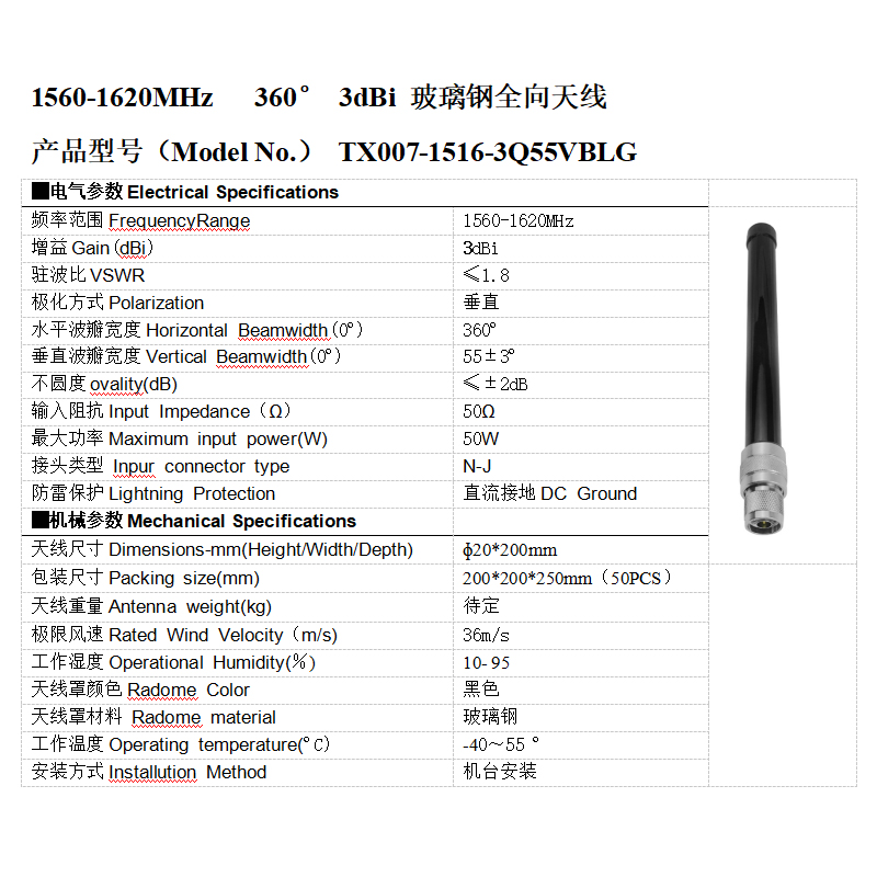 产品名称:全向玻璃钢天(tian)线1.5G 3dbi无人机(ji)反制设备 短玻璃钢天(tian)线