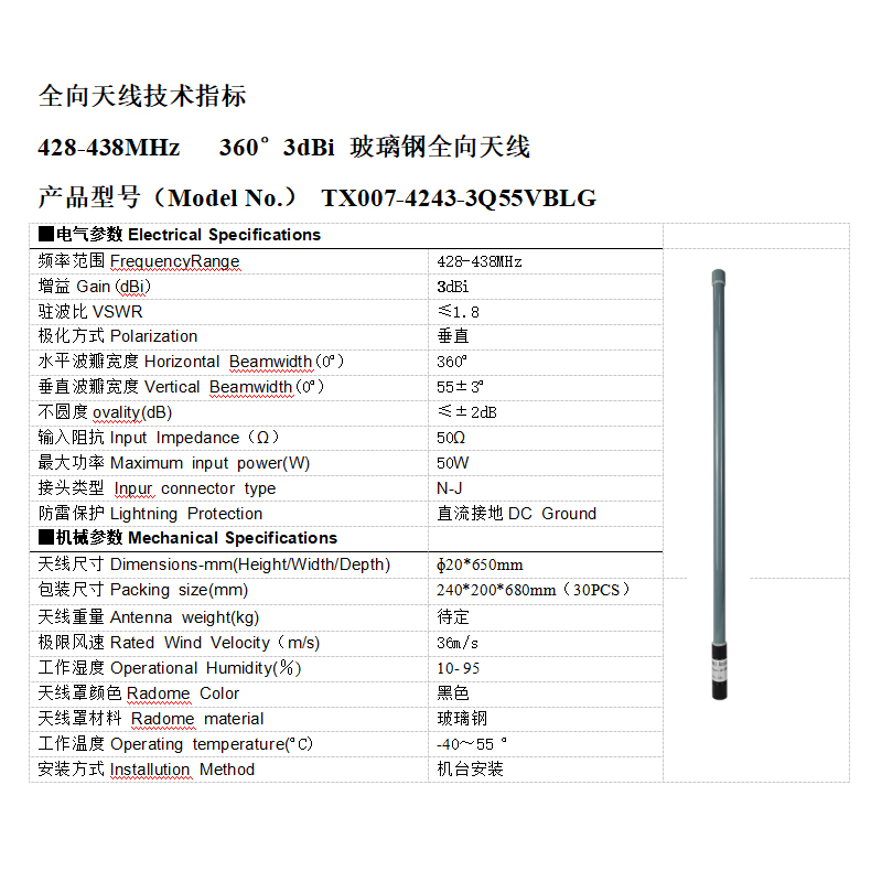 产品名称:全(quan)向玻璃(li)钢天(tian)线428-438MHz背负(fu)式无人机反制设备(bei) 玻璃(li)钢天(tian)线